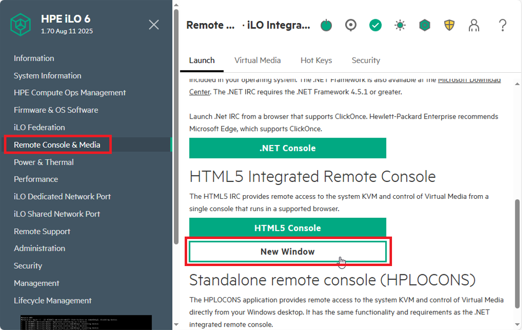 ベアメタルサーバーのコンソール画面を表示するため、「Remote Console & Media」をクリックします。