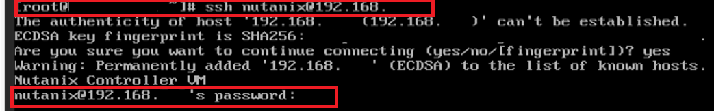 例:ssh nutanix@192.168.XXX.XXX