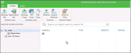 左ペインの「BACKUP & REPLICATION」をクリックすると、ジョブを管理する画面が表示されます。