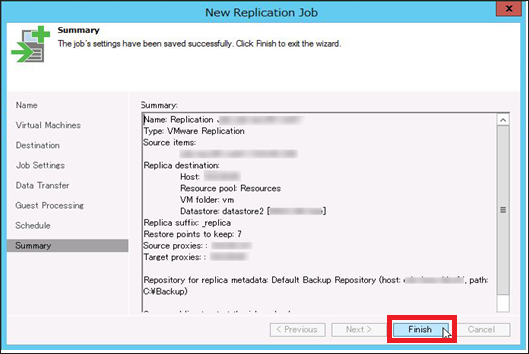 最後に設定内容のサマリが表示されますので、「Finish」をクリックしてジョブ作成は完了です。