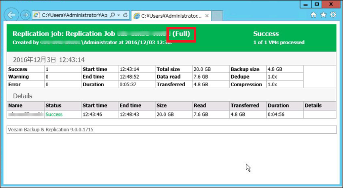 なお、フェールオーバー後は、レプリカ側が正となり、レプリケーションジョブが実行された場合はエラーとなりますので、このVMのレプリケーションジョブは削除して下さい。