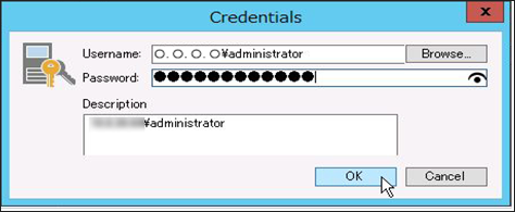Username登録は以下のように 「【登録するサーバのIPアドレス】administrator」 と記載する必要があります。