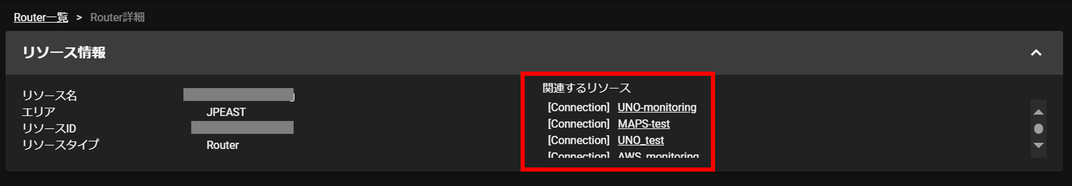 ※関連リソースは遷移先の詳細画面もしくはコネクション一覧画面からご確認いただけます。