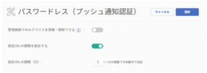 管理>設定>オプション機能>パスワードレス(プッシュ通知認証)の「設定」より設定可能です。