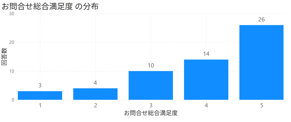 各項目における評価値として、質問No.1-5は1-5までの5段階を設定しております。(1:「不満足」、2:「やや不満足」、3:「普通」、4:「やや満足」、5:「満足」、を表します)
