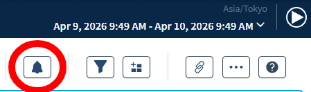 アラートの画面へは、Web Security Analyticsの画面で右上の方にあるベルのマークをクリックします。