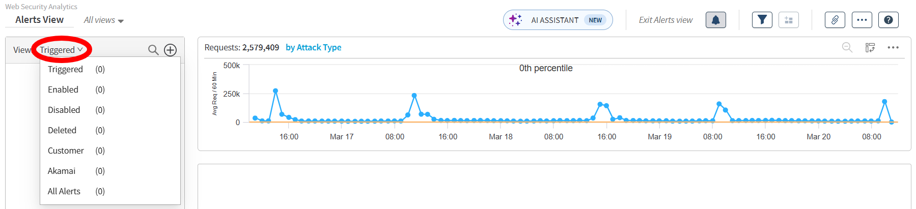 Triggeredの文字をクリックすると、画像のようにプルダウンメニューが表示され、Triggered以外にも以下から設定したアラートの状態に合わせ左メニューのアラート表示を変更することができます。