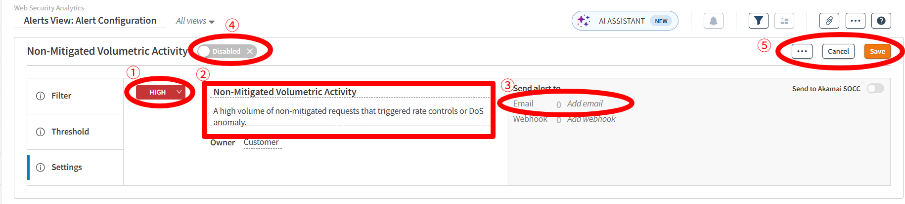 アラート設定を行うことで、例えば過度に遮断が発生している状況でメール通知したりすることで、サイバー攻撃集団等の攻撃キャンペーンではないか警告したり、誤検知が急激に高まってないか警告したりするようにできます。