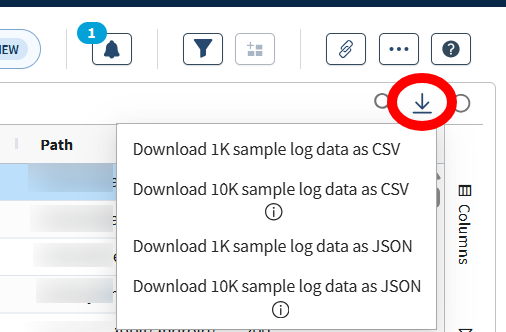 表示できる対象は100件までですが、リストとしてはCSVまたはJSON形式でフィルタ条件に合致した対象を1000件または1万件までダウンロードすることができます。