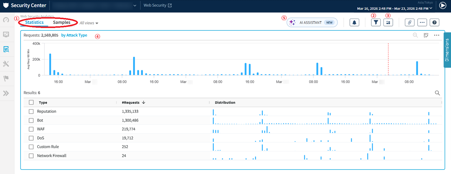 Analysis - Web Security Analytics(Statistics)の画面構成¶