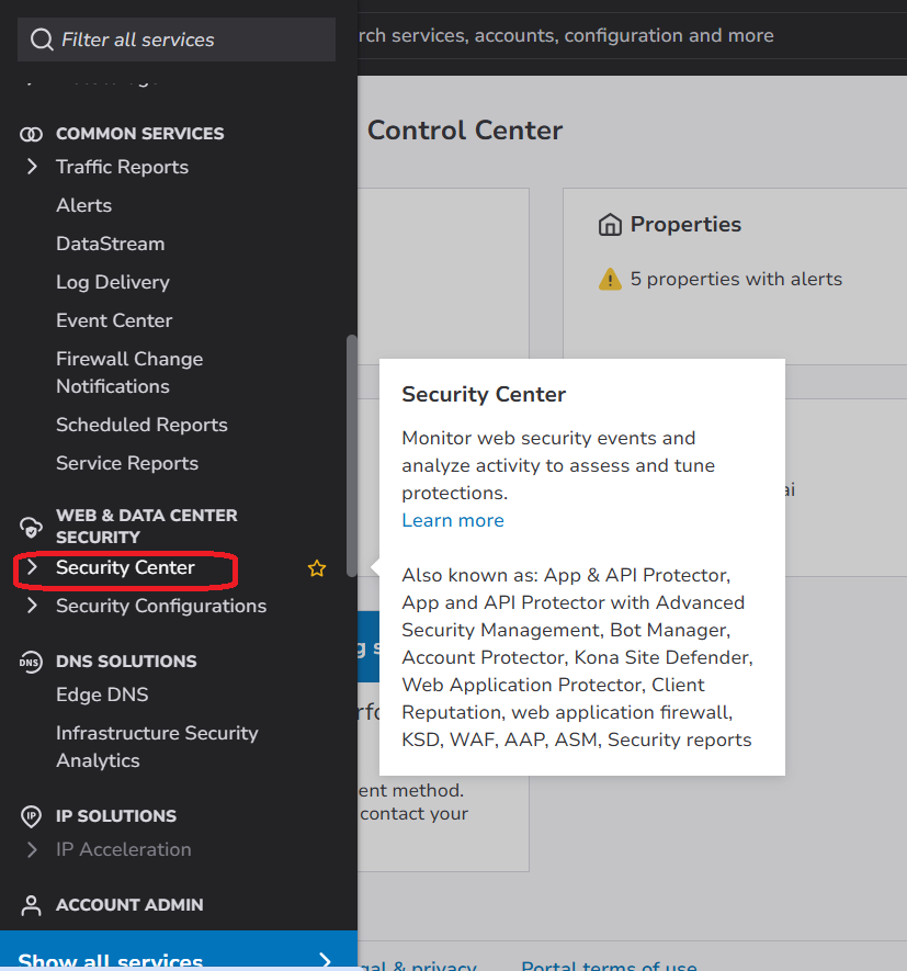 CDN/Edge Platform Powered by Akamaiでは、AAPなどのセキュリティメニューの標準機能としてSecurity Centerという機能がございます。