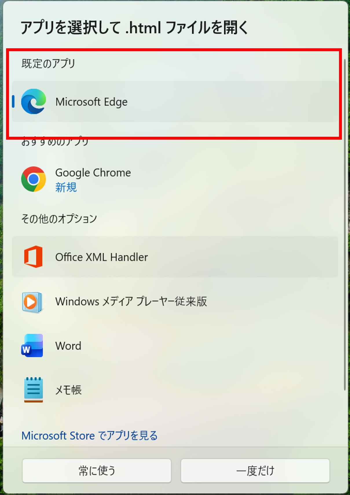 Windowsのアプリ選択画面から既定のアプリを選択します。