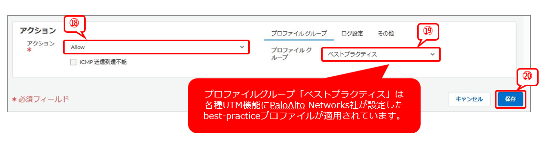 ⑲ プロファイルグループに[ベストプラクティス]が選択されていることを確認します。