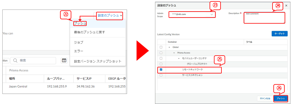 ㉒ 設定画面右上の[設定のプッシュ]をクリックし、[プッシュ]をクリックします。