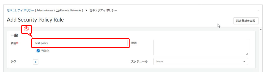 ⑤ 任意のセキュリティポリシーの[名前]を入力します。