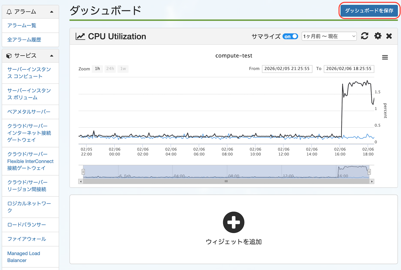 ダッシュボード機能を利用することで、ご利用中の複数リソースの状況を一目で把握することができます。