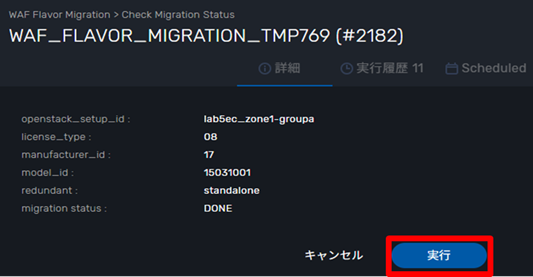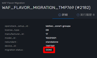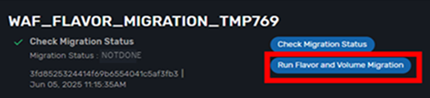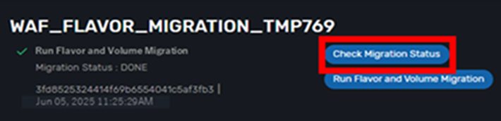 Run Flavor and Volume Migrationの移行状況を表示します。 |