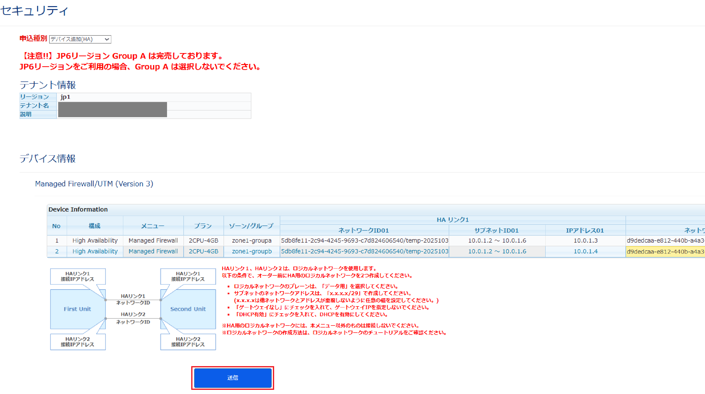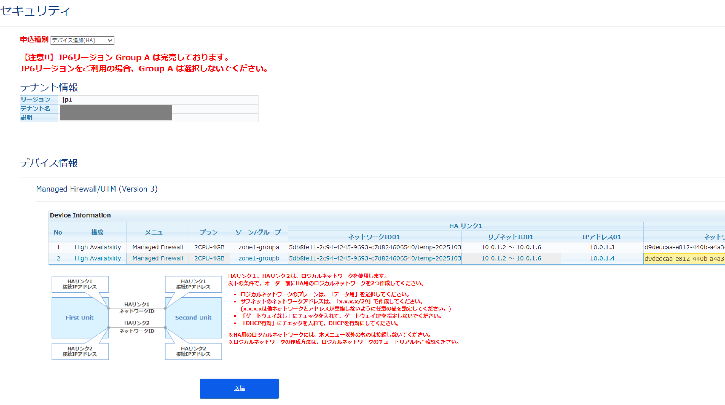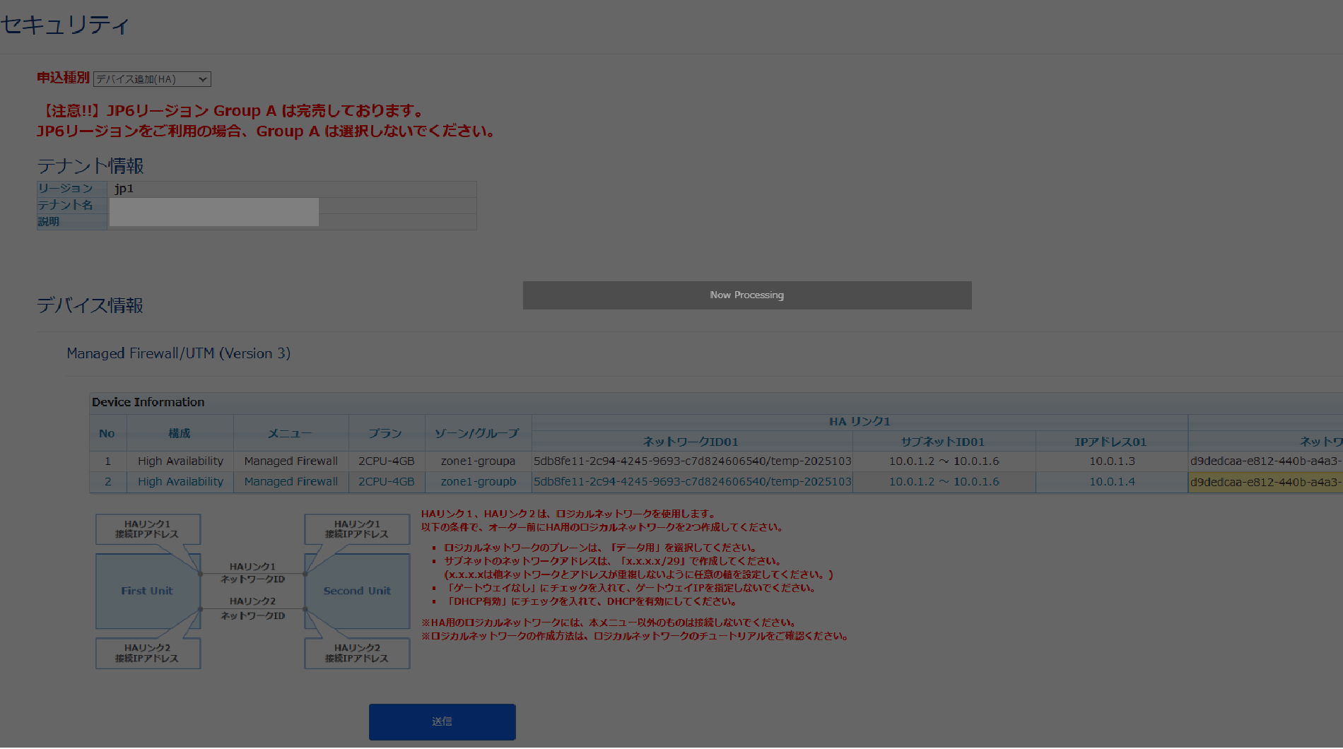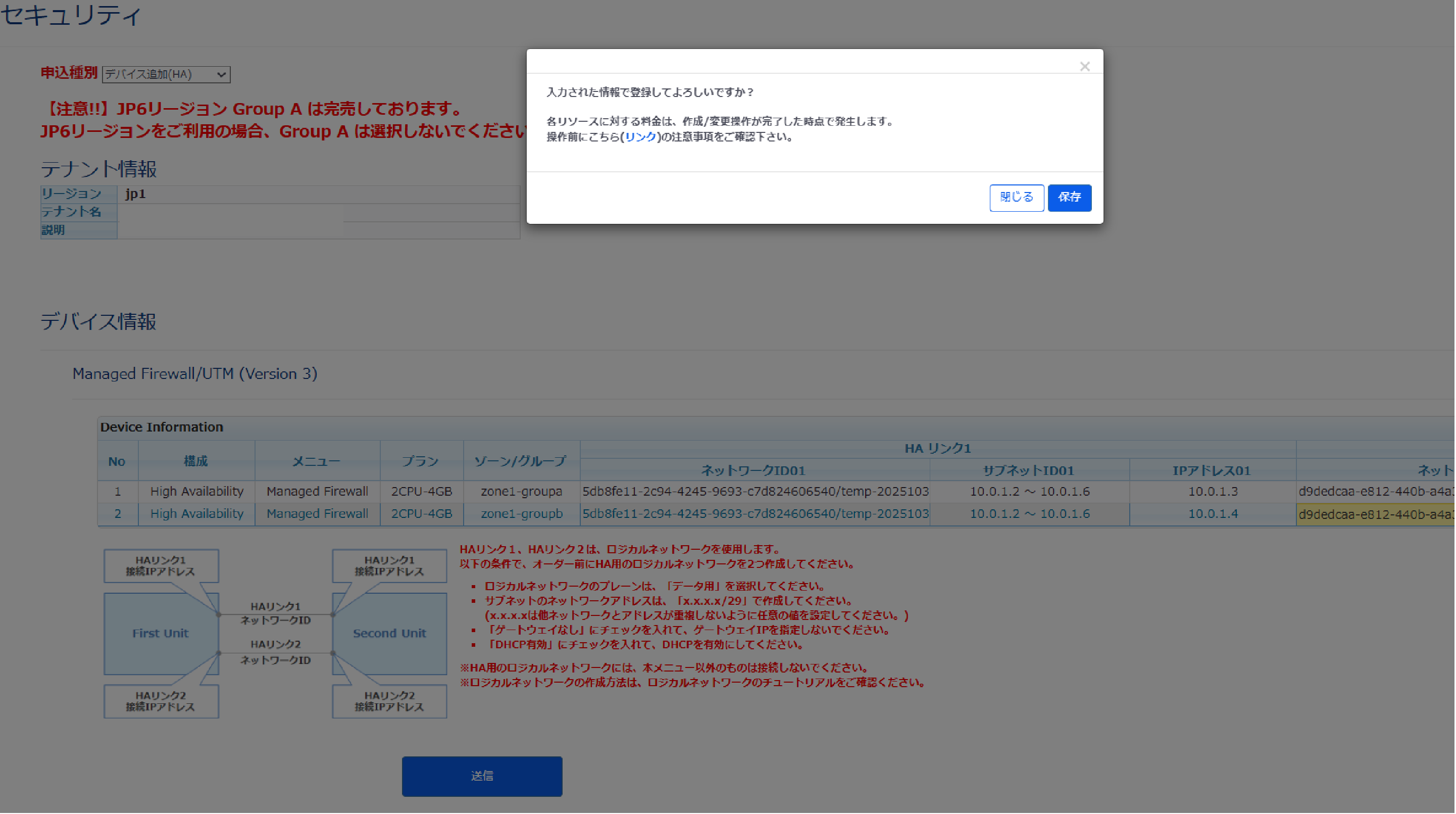 Managed Firewall もしくは Managed UTM の「デバイス追加(HA)」の手順について説明します。