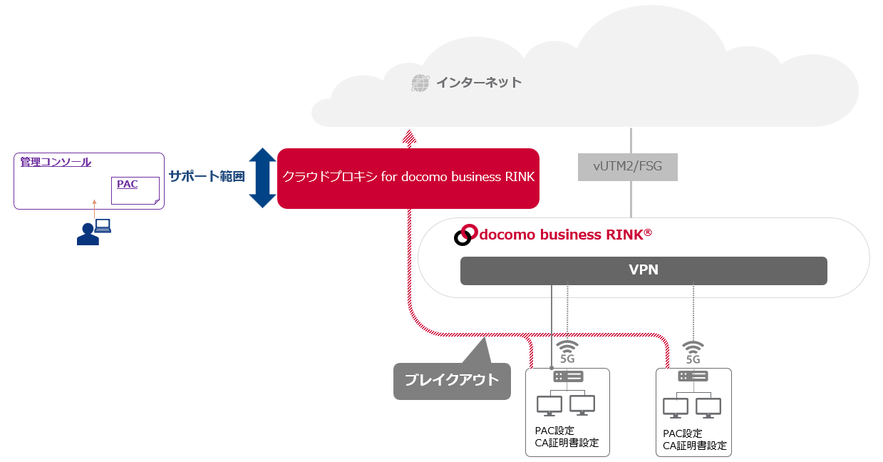 クラウドプロキシのPACファイルの利用を前提とするため、お客さまが管理するPACファイルの設定変更や移行については支援対象外とさせていただきます。