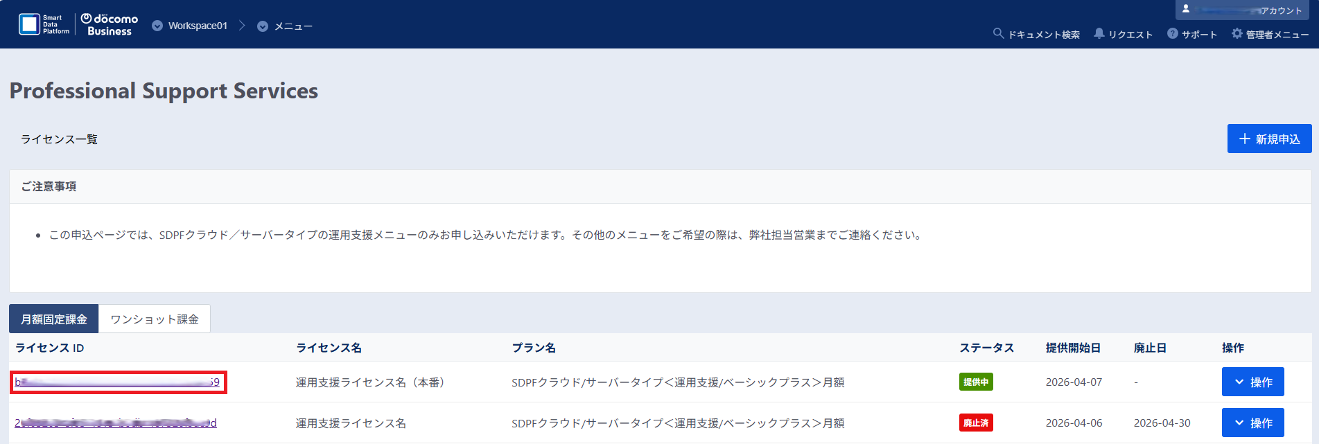 (3)「ライセンスID」に紐づいた申し込み情報を参照できます。