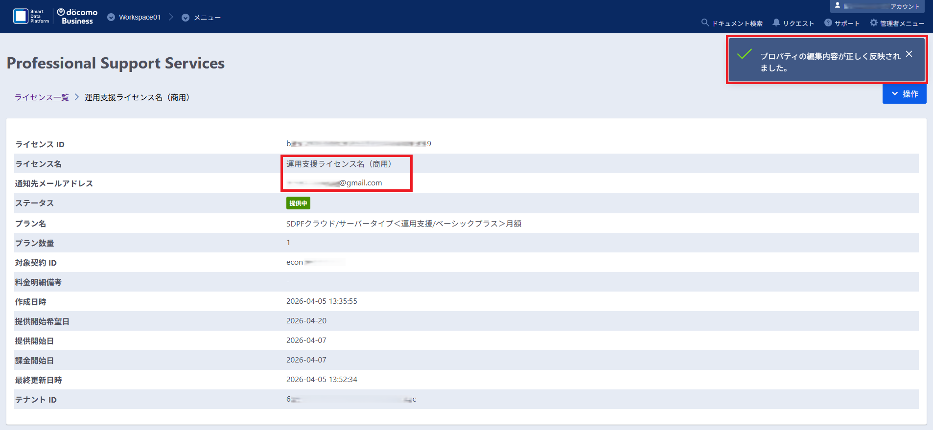(4)「プロパティの編集内容が正しく反映されました。」が表示されることを確認します。
