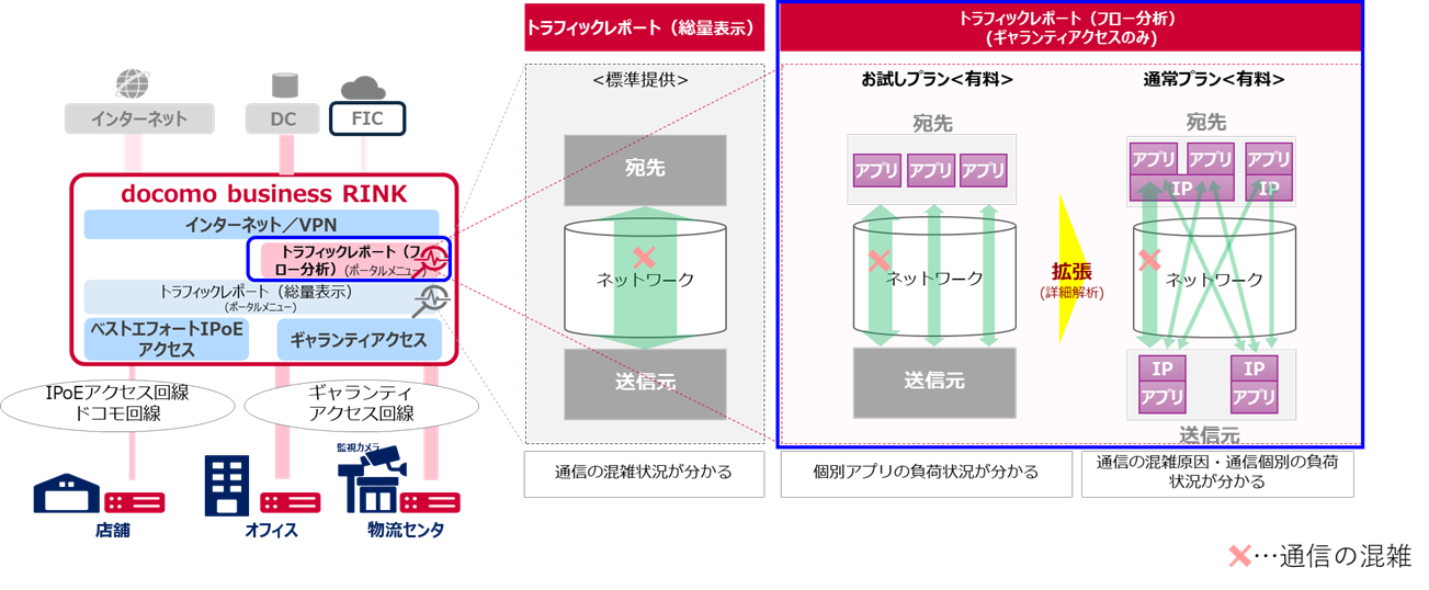 「トラフィックレポート(フロー分析)」は、ギャランティアクセスのオプション機能です。ベストエフォートIPoEアクセスおよびワイヤレスアクセスでは本プションはご利用いただけません。