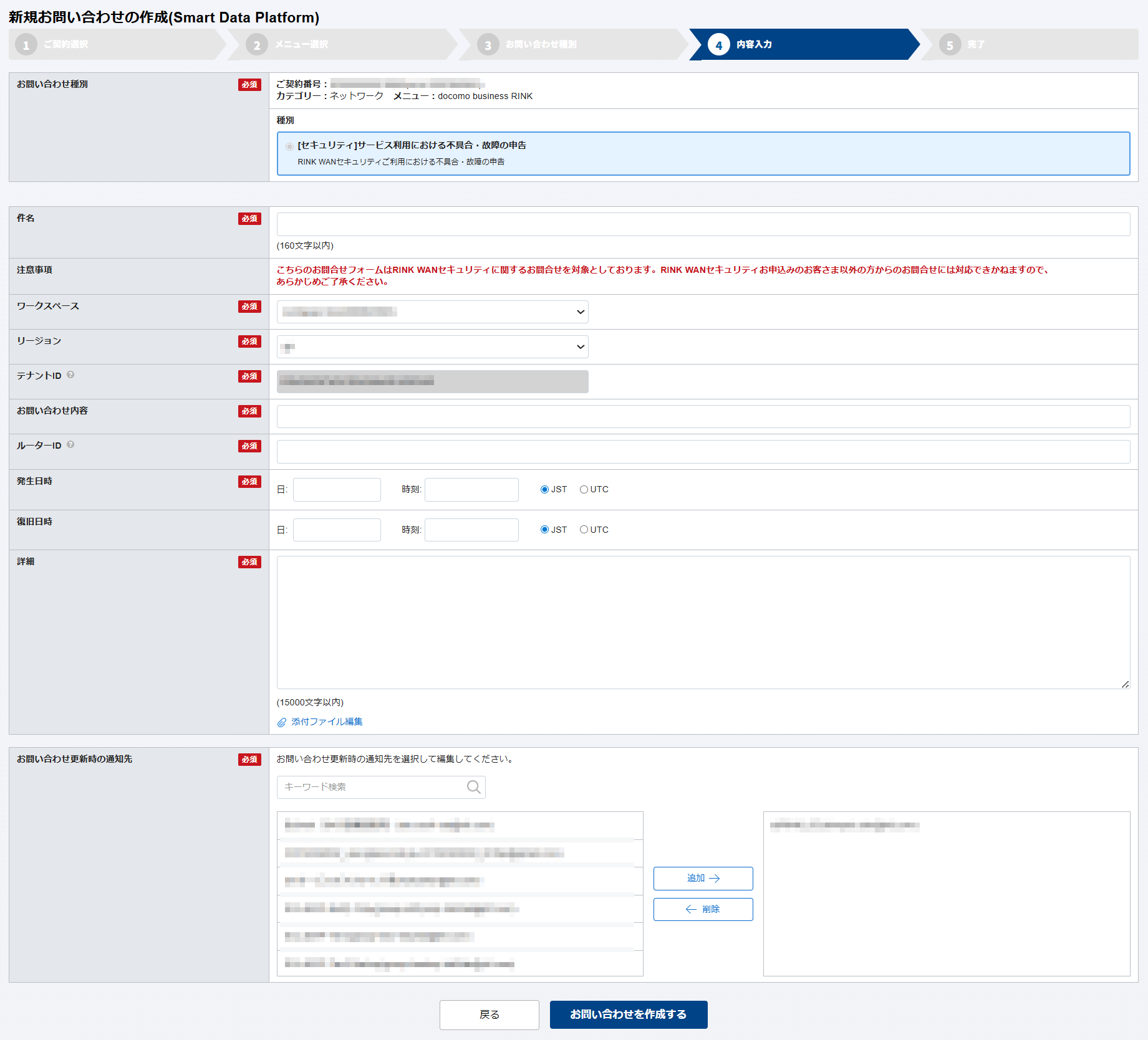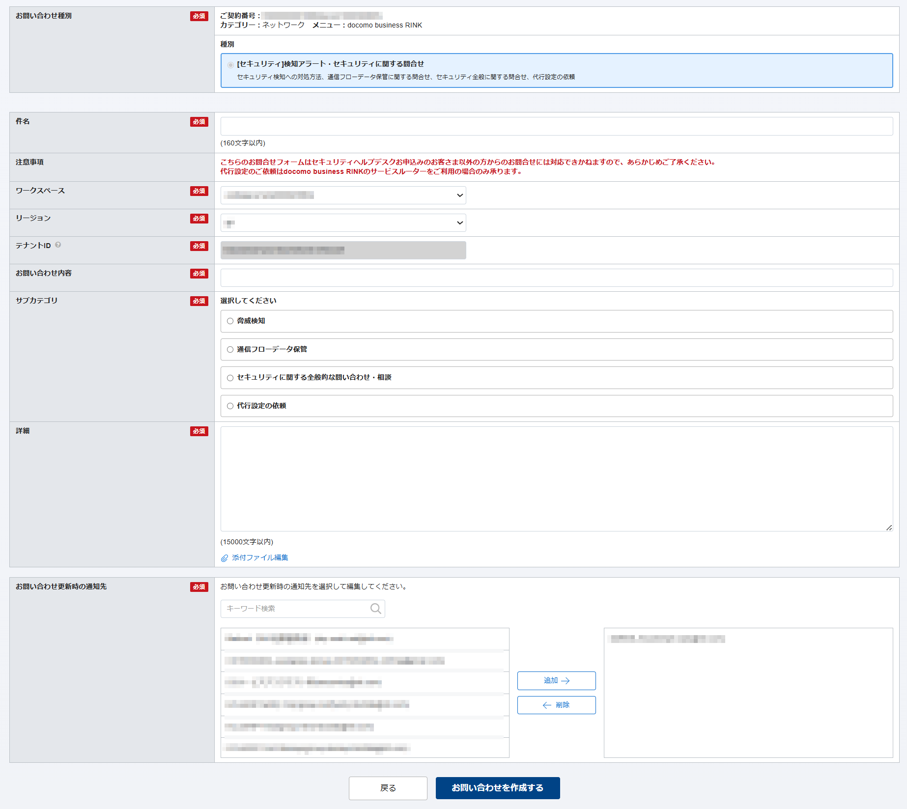 こちらのお問い合わせフォームはdocomo business RINK WANセキュリティに関するお問い合わせを対象としています。