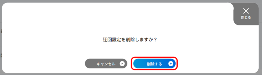 「迂回設定を削除しますか?」の画面が表示されますので、[削除する]ボタンを押下します。