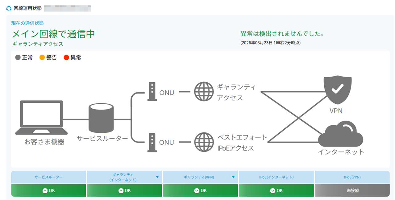 - 設定が完了した後、対象のルーターにてセルフチェックを実行し、正常のステータスであることを確認します。セルフチェックの手順については「セルフチェック機能を活用する」をご参照ください。