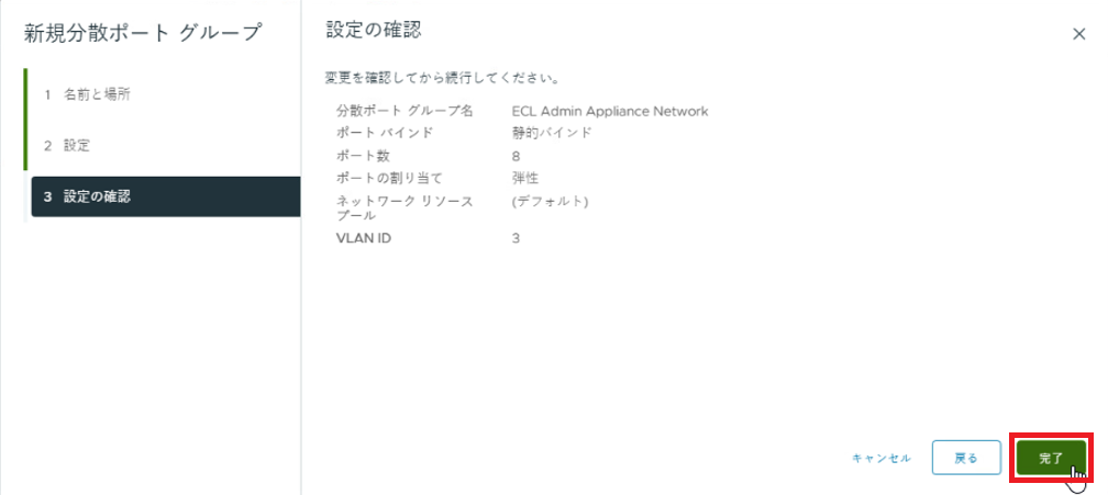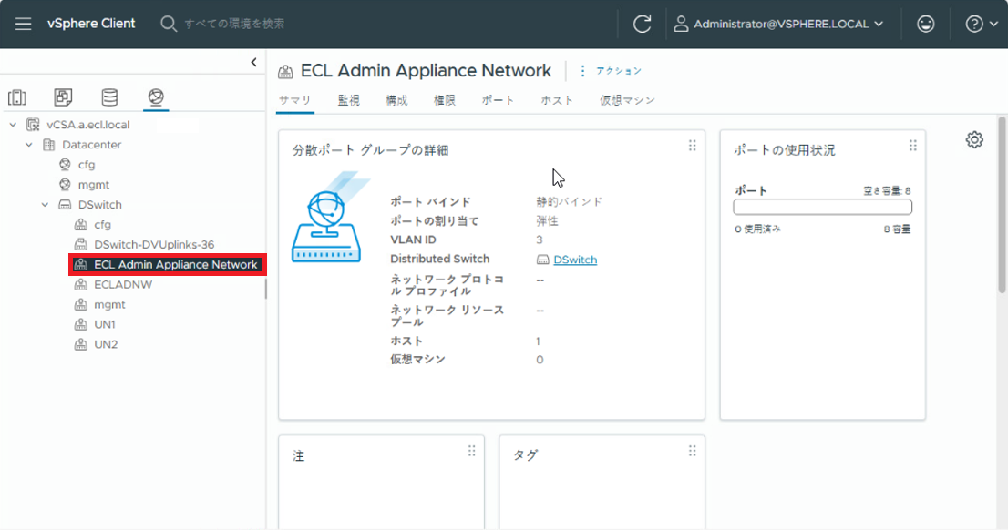 ポートグループの一覧に「ECL Admin Appliance Network」が作成されたことを確認します。