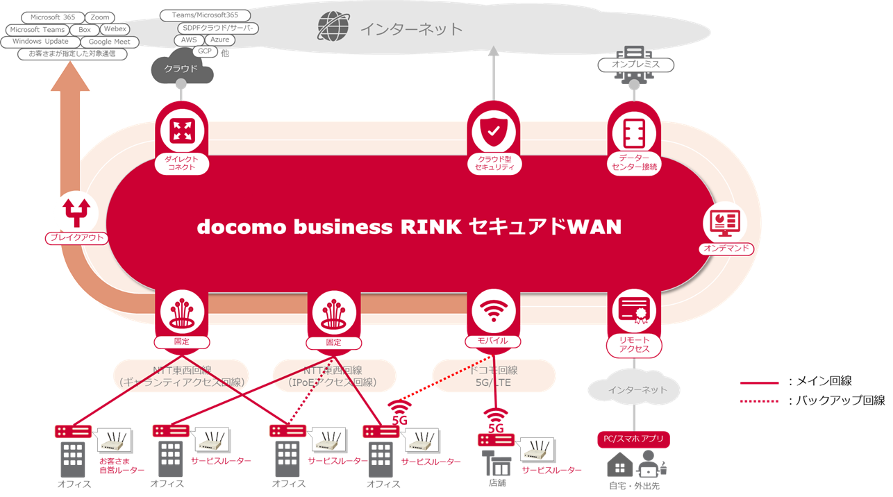 docomo business RINK セキュアドWANの主な特長は以下のとおりです。